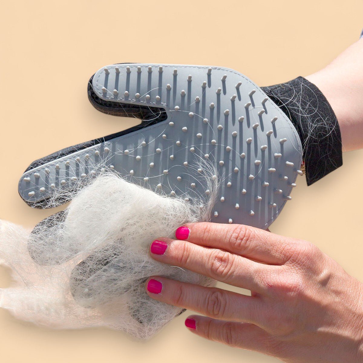 Der flexible Handschuh passt sich jeder Hand an und macht das Bürsten zu einem echten Wellness-Moment für dein Tier.
